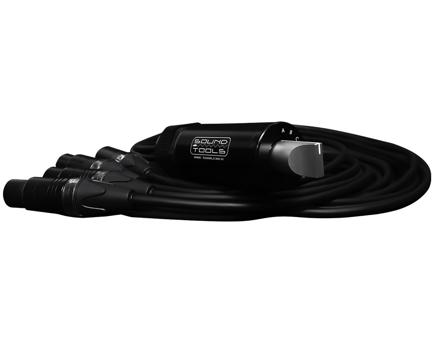 Quickly select between three microphones using a single board channel with the SoundTools Mic Switcher. Perfect for monitor engineers who need a simple and quiet option to switch to backup mics. The SoundTools Mic Switcher consists of 4 XLR cables (3-in, 1-out), each approximately 5’ (1.5m) long and terminated with genuine Neutrik connectors.